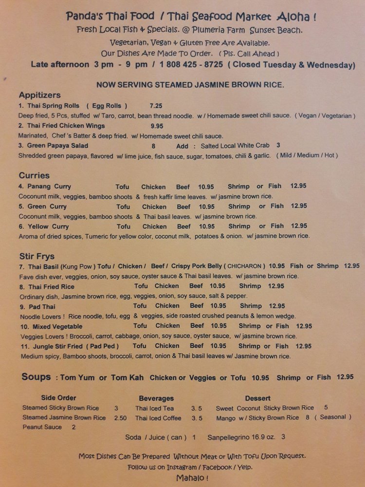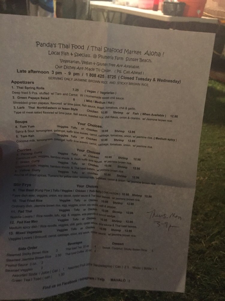 Welcome to Panda's Thai Food Truck, the hidden gem of Haleiwa! Located conveniently at 59-158 Kamehameha Hwy, this food truck is dedicated to serving authentic Thai cuisine that transports diners straight to Thailand.